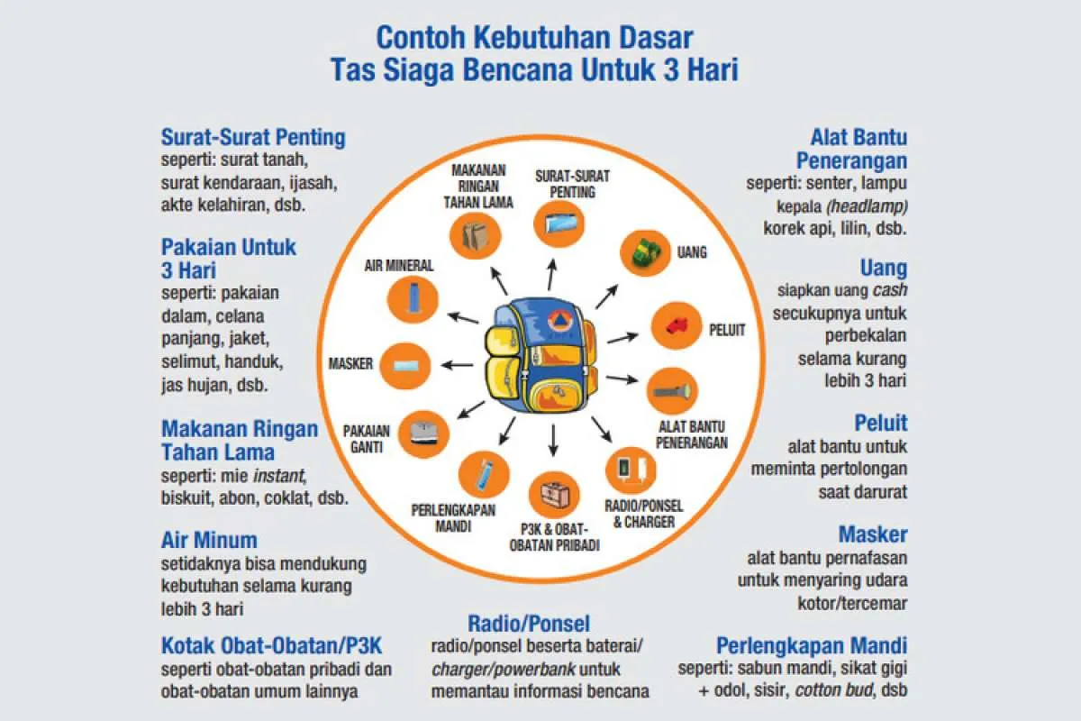 Apa saja barang yang dimasukkan dalam tas siaga bencana? Simak daftarnya berikut ini.
