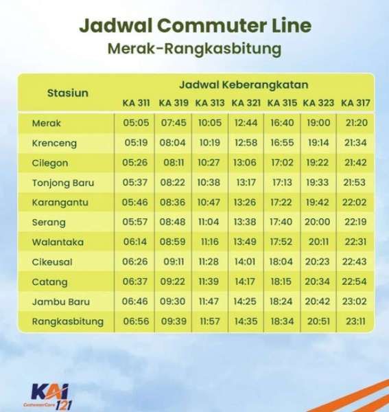 Setelah mengetahui cara membeli tiket, simak jadwal keberangkatan kereta petani dan pedagang rute Merak-Rangkasbitung ini.